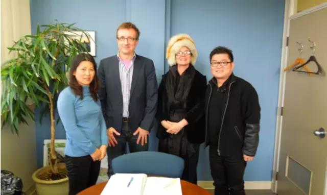 照片是Bruno Freschi(左一),加拿大赛瑞(CSC)董事廖文瑾先生(中)以及艾利克斯原合伙人Nick(右一)的合照