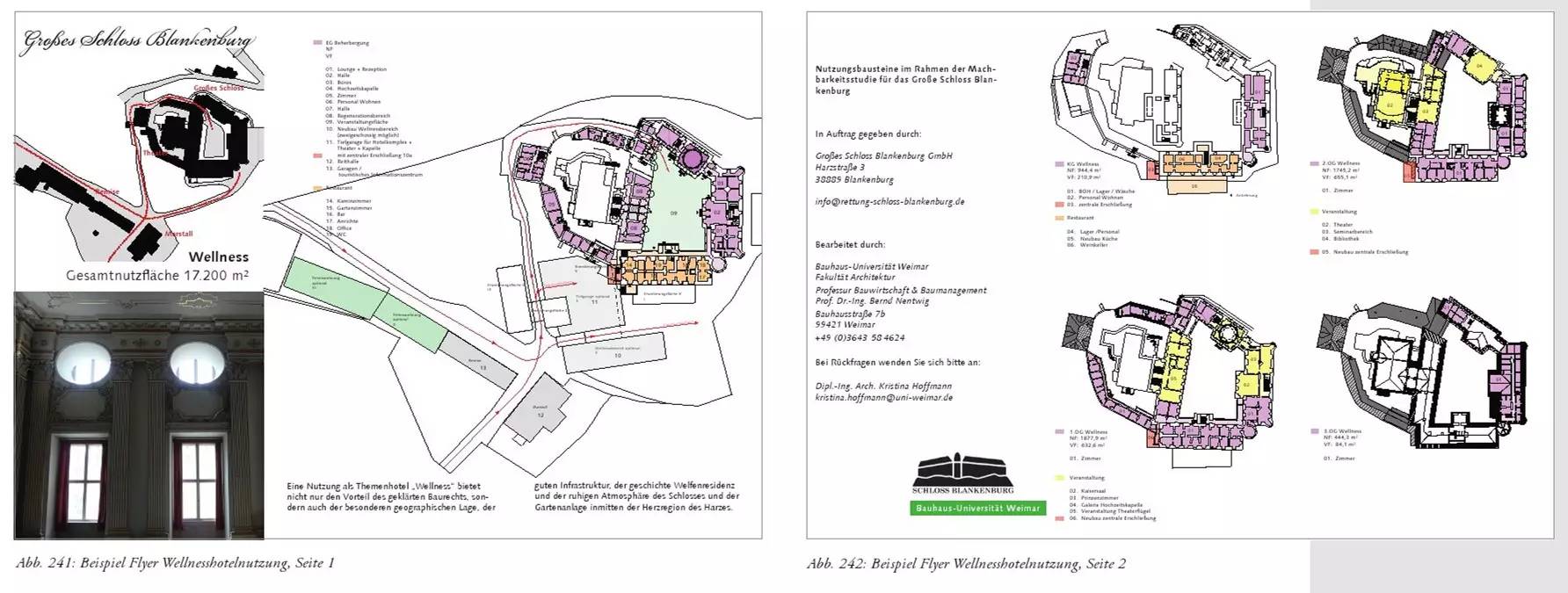 包豪斯学院弹性城市建设可行性研究 2008年,城堡被德国开发商以1马克(相当于5元人民币)的价格买入,并决定投入3000万欧元修建此项目。该城堡在作为德国文化遗产的前提下不断进行修复,也在五年前,针对此城堡进一步工作:“弹性城市可行性研究“在包豪斯学院正式启动。GROSSES SCHLOSS BLANKENBURG于2014年获得德国遗产保护奖。 长达五年的前期策划内容包含,区域分析、经济结构分析、投资环境分析、旅游分析、市场分析、残障儿童分析(因德国新生儿人口出生率比较低,因此非常关注儿童)、居住分析、混合功能分析、分化分析等等。