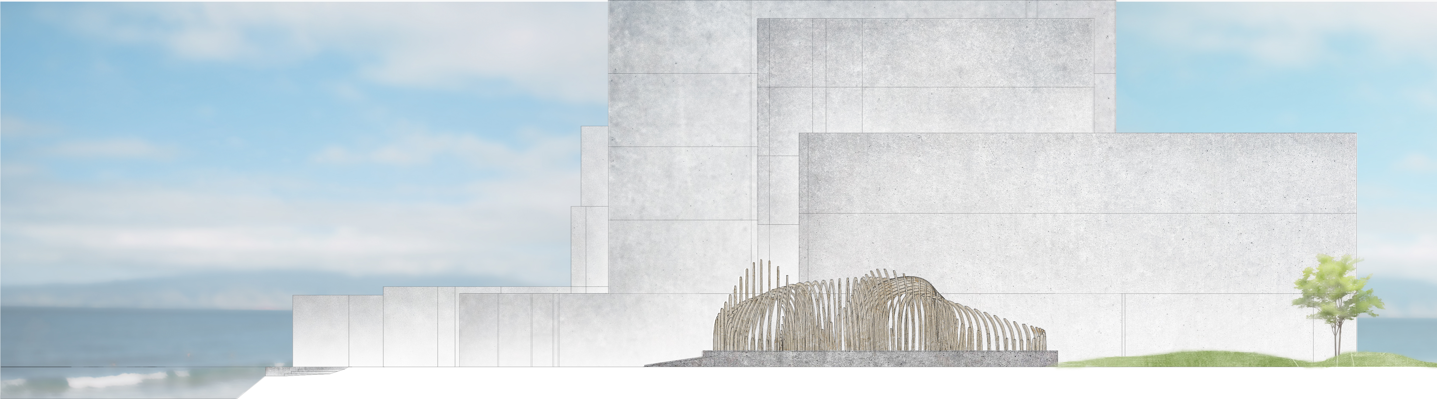 我们通过“海之韵”装置表达对滨海城市区域活化的探索与期待,同时对城市古城、自然生态的深刻回顾及思考。在城市居住环境中,创造一条感受和体验“历史”与“生态”的艺术通道。